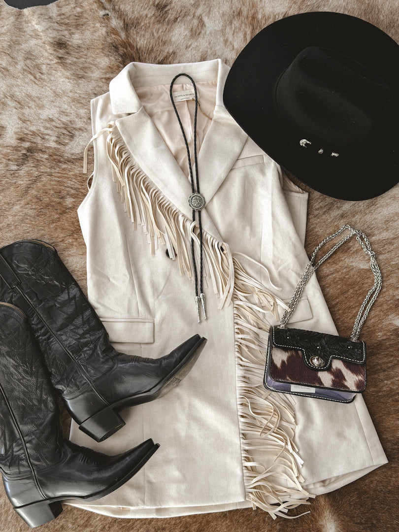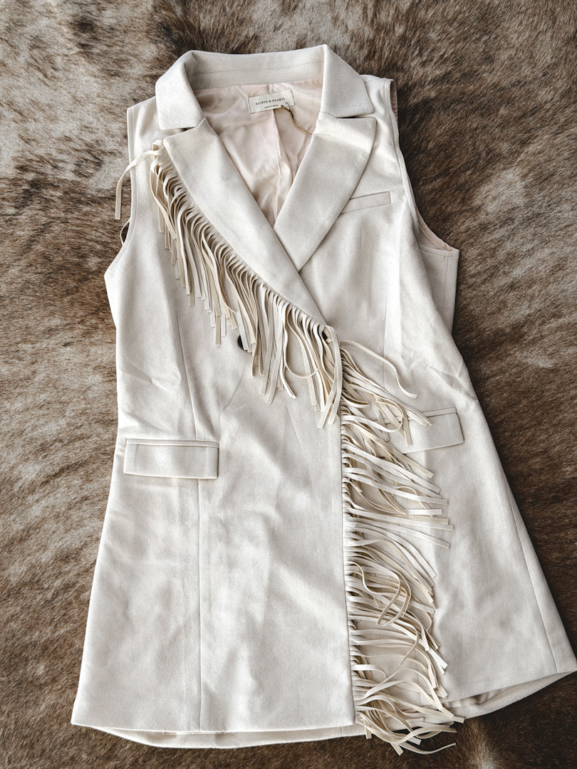 Double Fringe Sued Dress- Ivory *PRE ORDER February 27th*