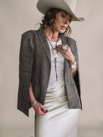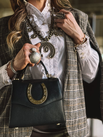 Impress with this gorgeous western Navajo Adjustable Midnight Concho Ring! Handmade from sterling silver, this ring is adjustable in size and can be worn on any finger. Featuring a beautiful hand stamped design, measuring 1 3/4 inches long and wide, this signed and stamped piece is truly a work of art.