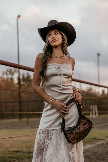 The Double J Bits Shoulder Bag – Caramel Leather blends heirloom-level craftsmanship with modern western style. Handcrafted from rich caramel leather and embossed with the signature Double J bits pattern, this elevated shoulder silhouette brings timeless cowgirl refinement to everyday wear. Durable, detailed, and beautifully structured, it’s the kind of bag that turns into a forever piece.