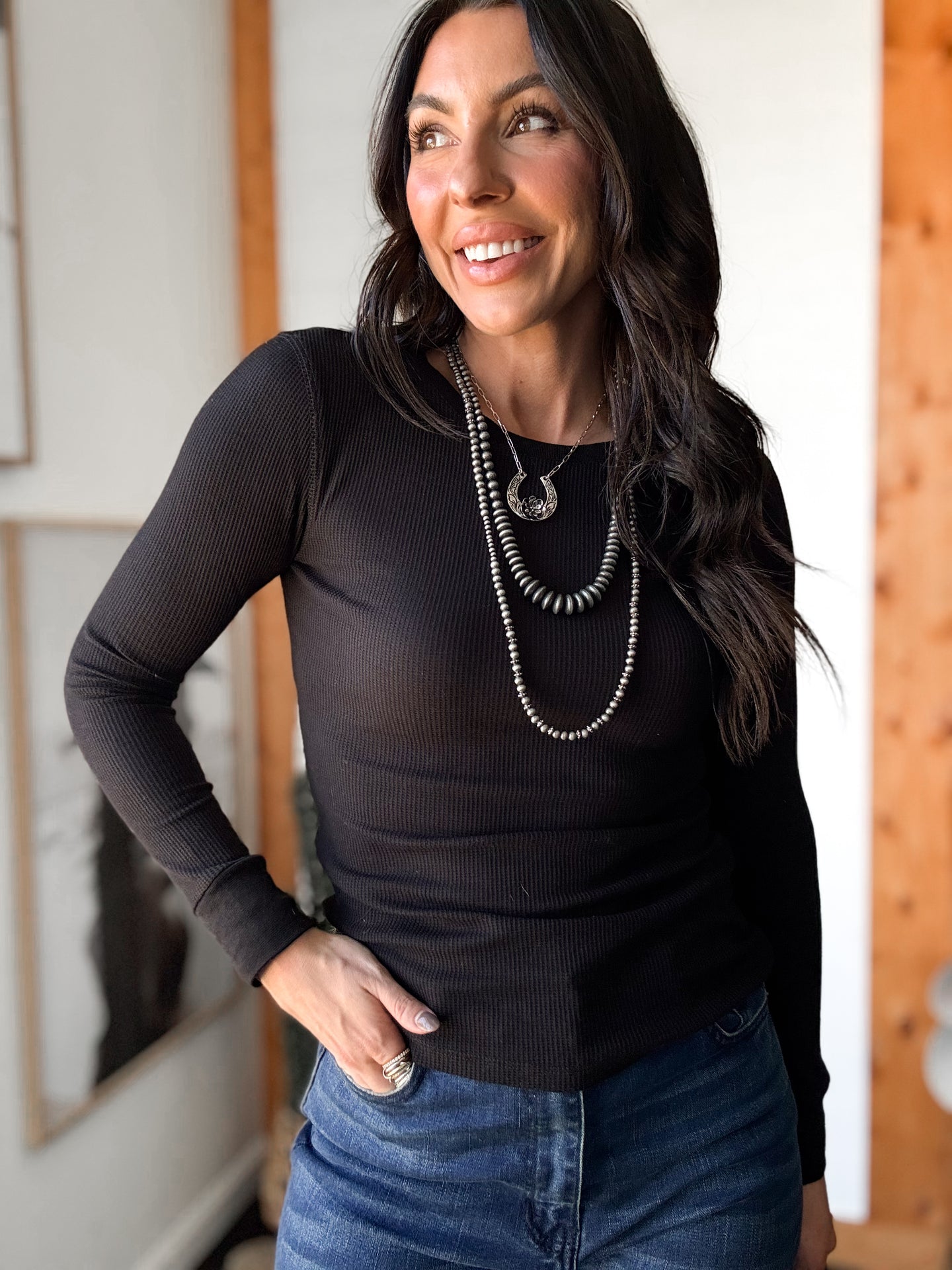 Ribbed Long Sleeve Turtle Neck - Deep Taupe