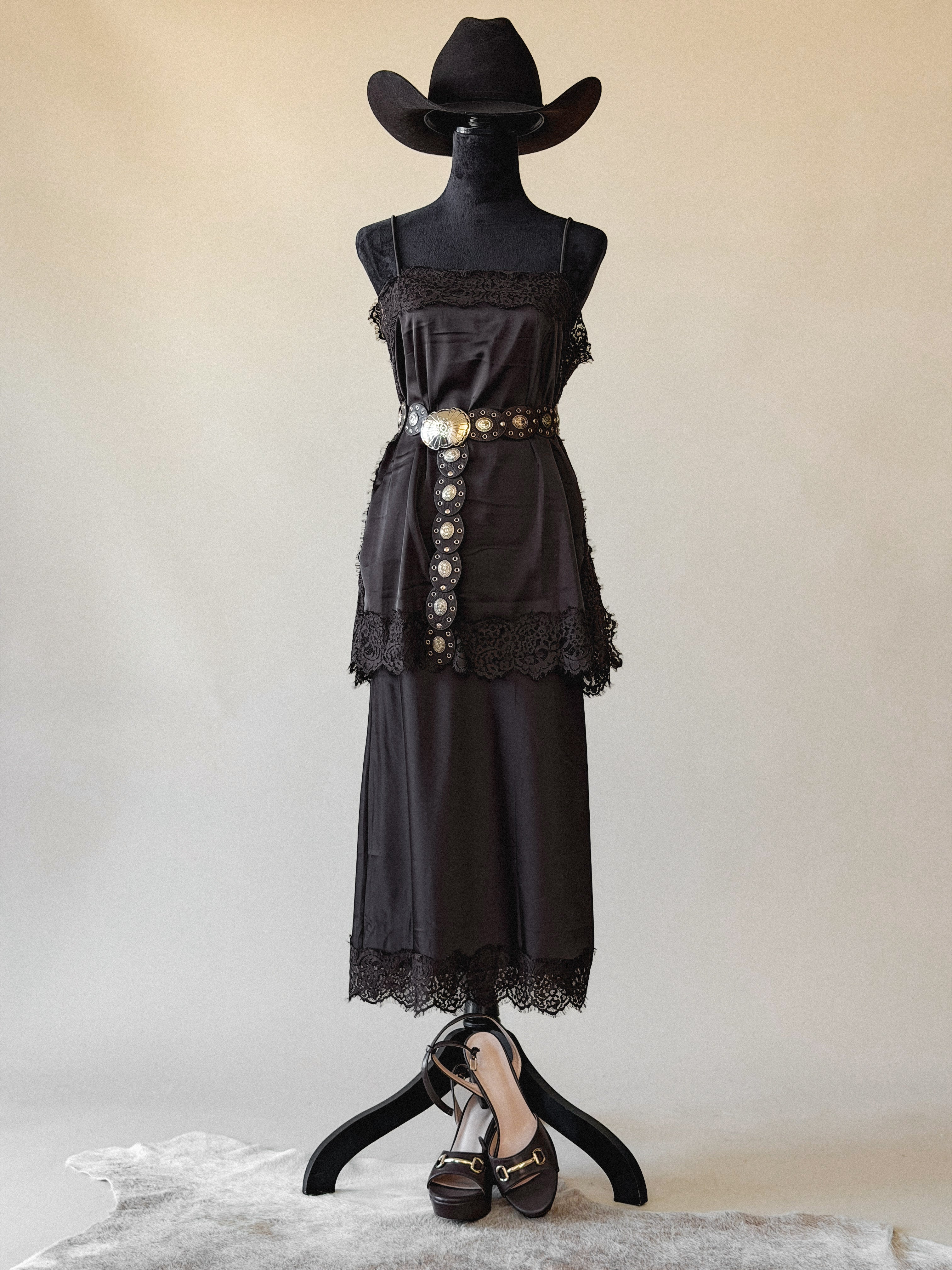 The Golden Mesa Medallion Belt is a bold western statement piece with a Y2K edge. Designed with rich brown faux leather circular panels and gold-tone western medallion accents, this belt adds texture, shine, and movement to your look. Wear it low on the hips with vintage denim or cinched at the waist over dresses for that effortless festival cowgirl vibe that feels styled without trying too hard.