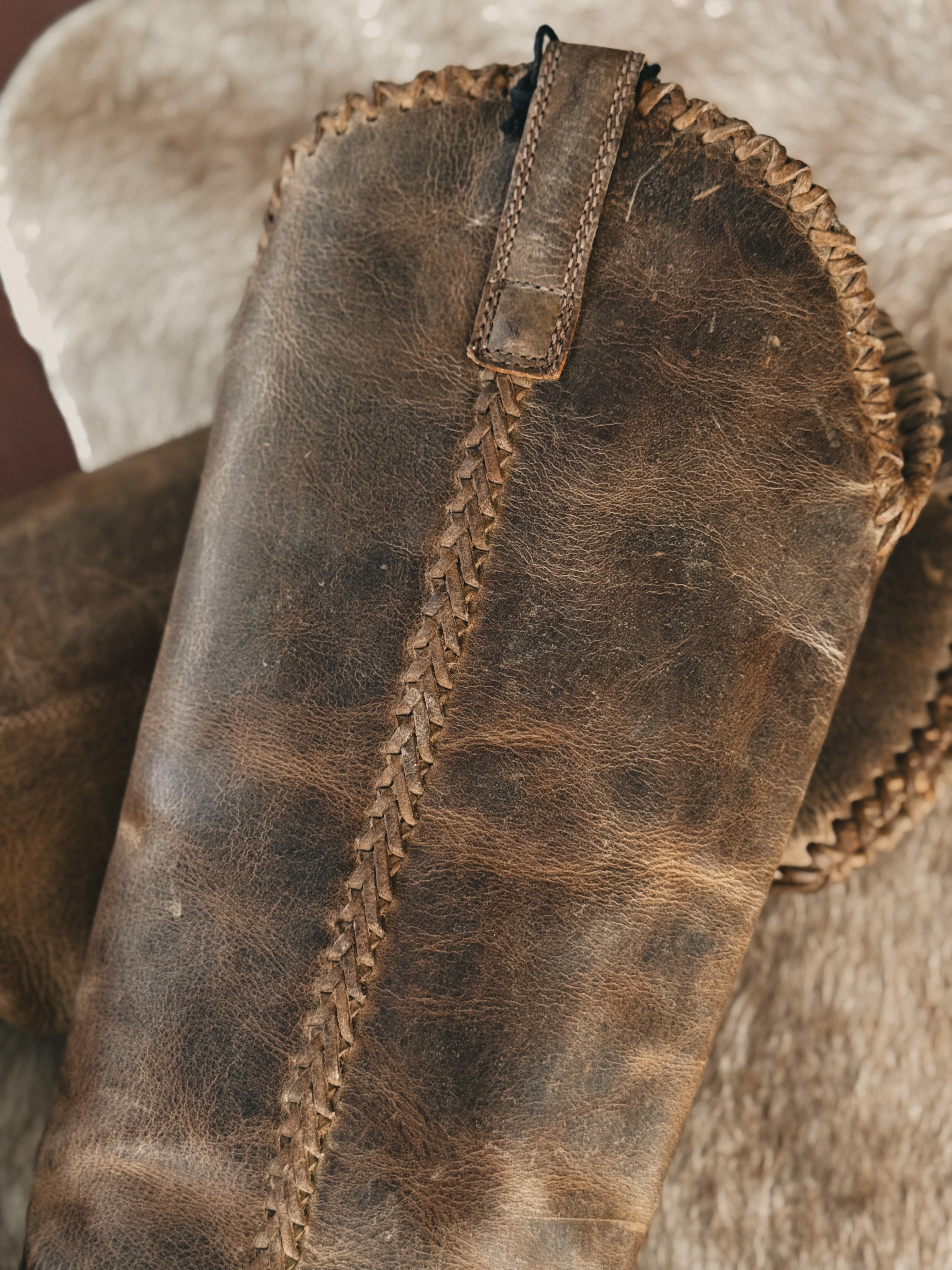 Rugged meets refined in these tall chocolate brown cowgirl boots. Made from premium leather, they feature bold cross-stitching along the shaft and scalloped trim at the top—giving them that worn-in western edge with a polished finish.