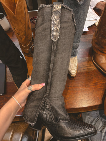 Dingo Shabby Black Denim & Lizard Embossed Western Boots