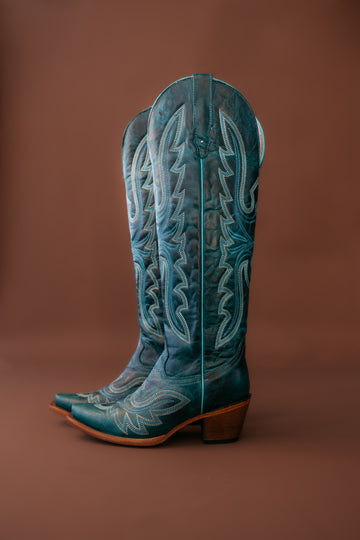 Make a statement in the Allison Tall Turquoise Boots by Rockem. Handcrafted in León, Mexico, the bootmaking capital of the world, these turquoise beauties are built with premium, 100% genuine leather and finished with signature Rockem craftsmanship.