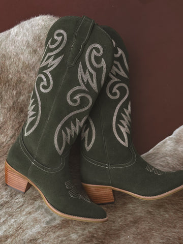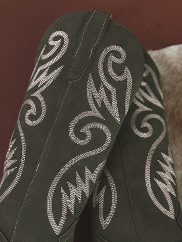 Olive Suede Embroidered Cowgirl Boots