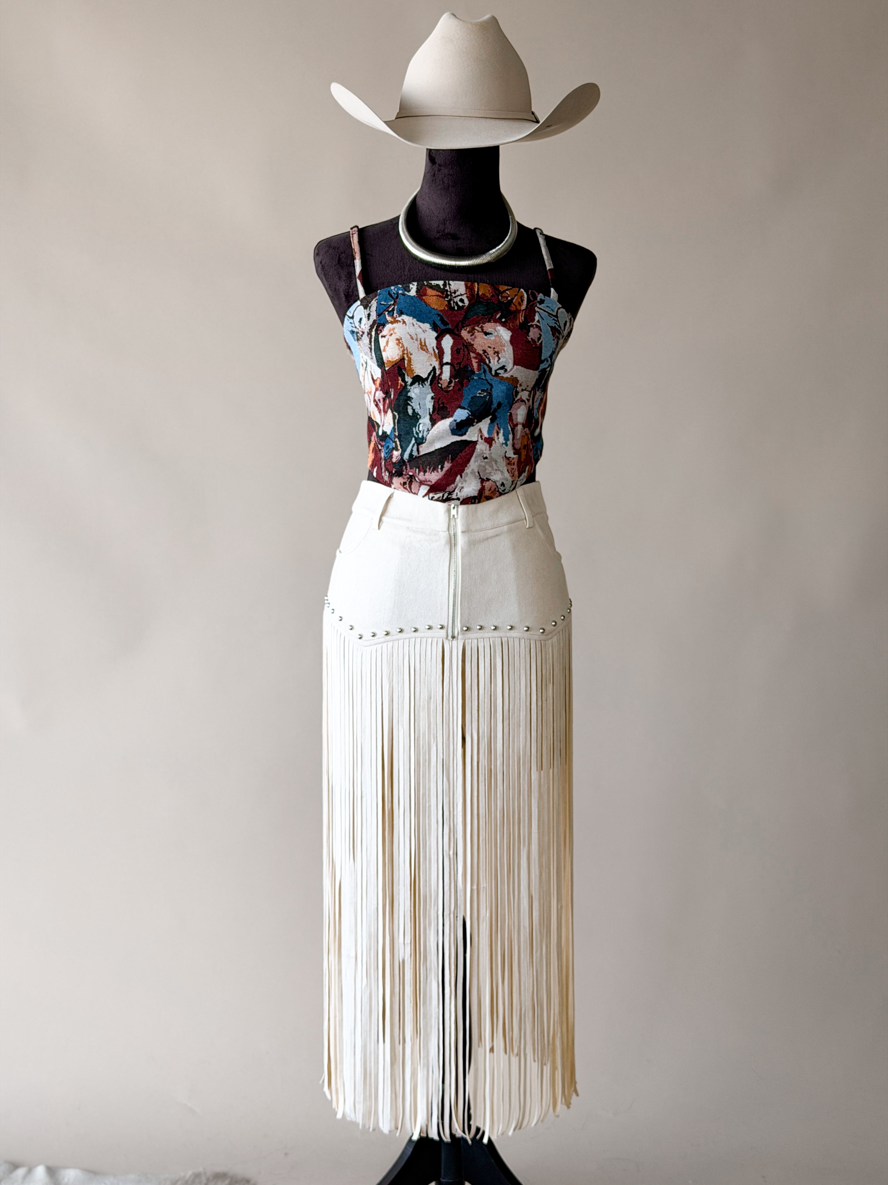 These faux suede fringe shorts feature a structured waistband with extended fringe and stud detailing, designed for western outfits, country concerts, festivals, and arena-to-after styling.