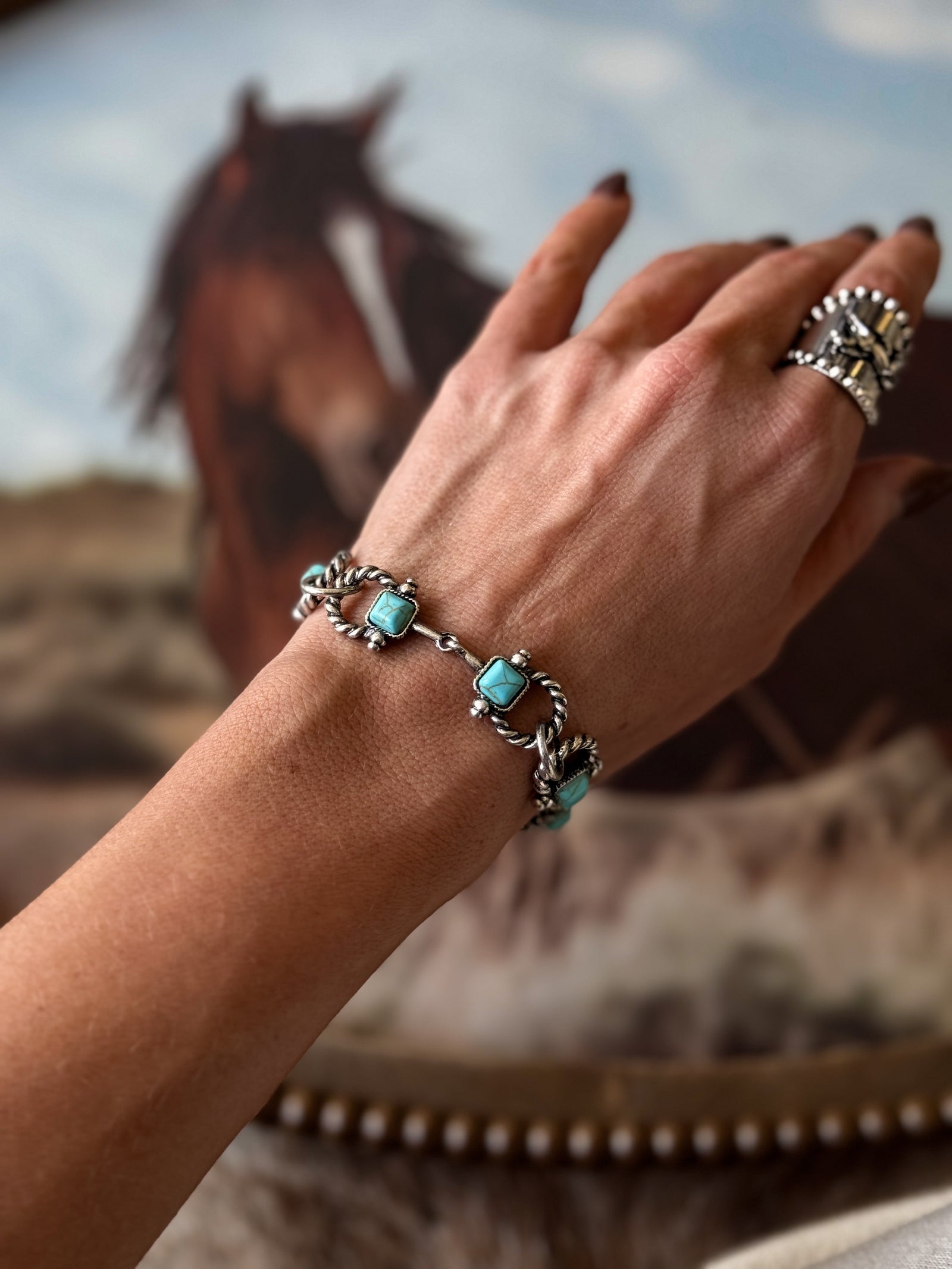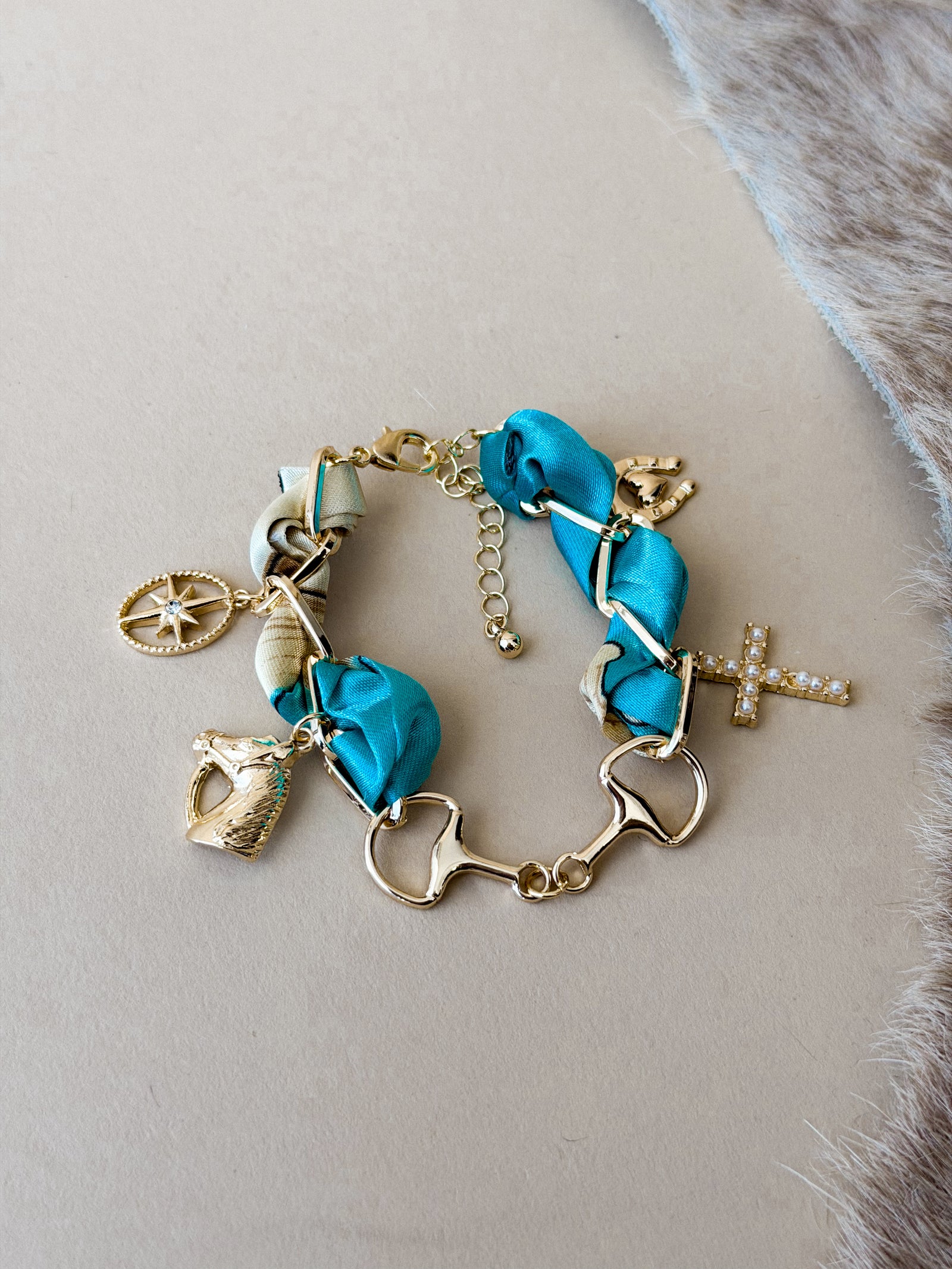 Turquoise Bandana Charm Bracelet – Gold
