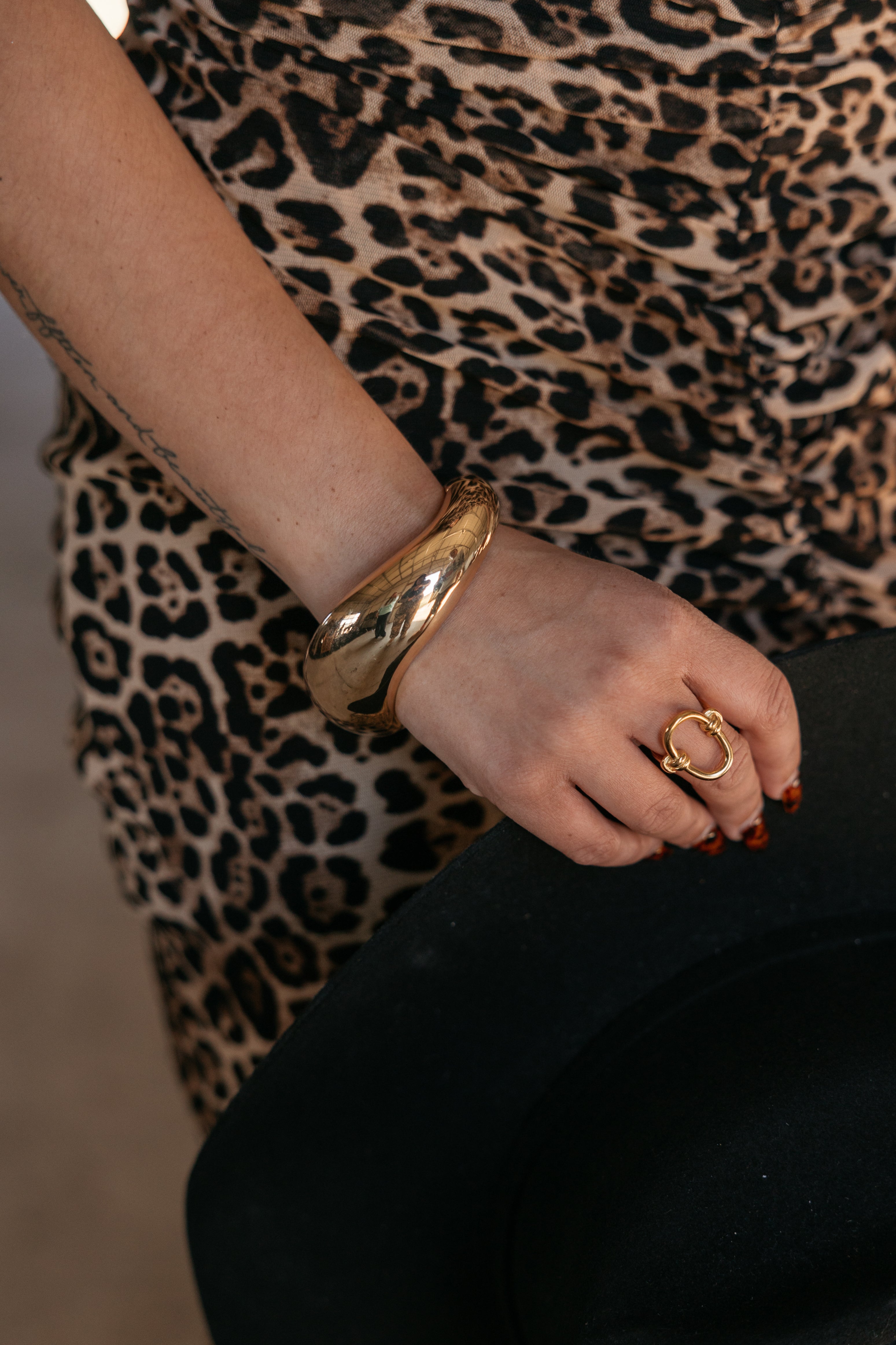 Crafted from 100% recycled metals — copper, brass, and steel — and finished in recycled 14K gold PVD plating, this piece blends modern polish with vintage soul. Designed to stand alone, but plays well stacked when you want to push it.