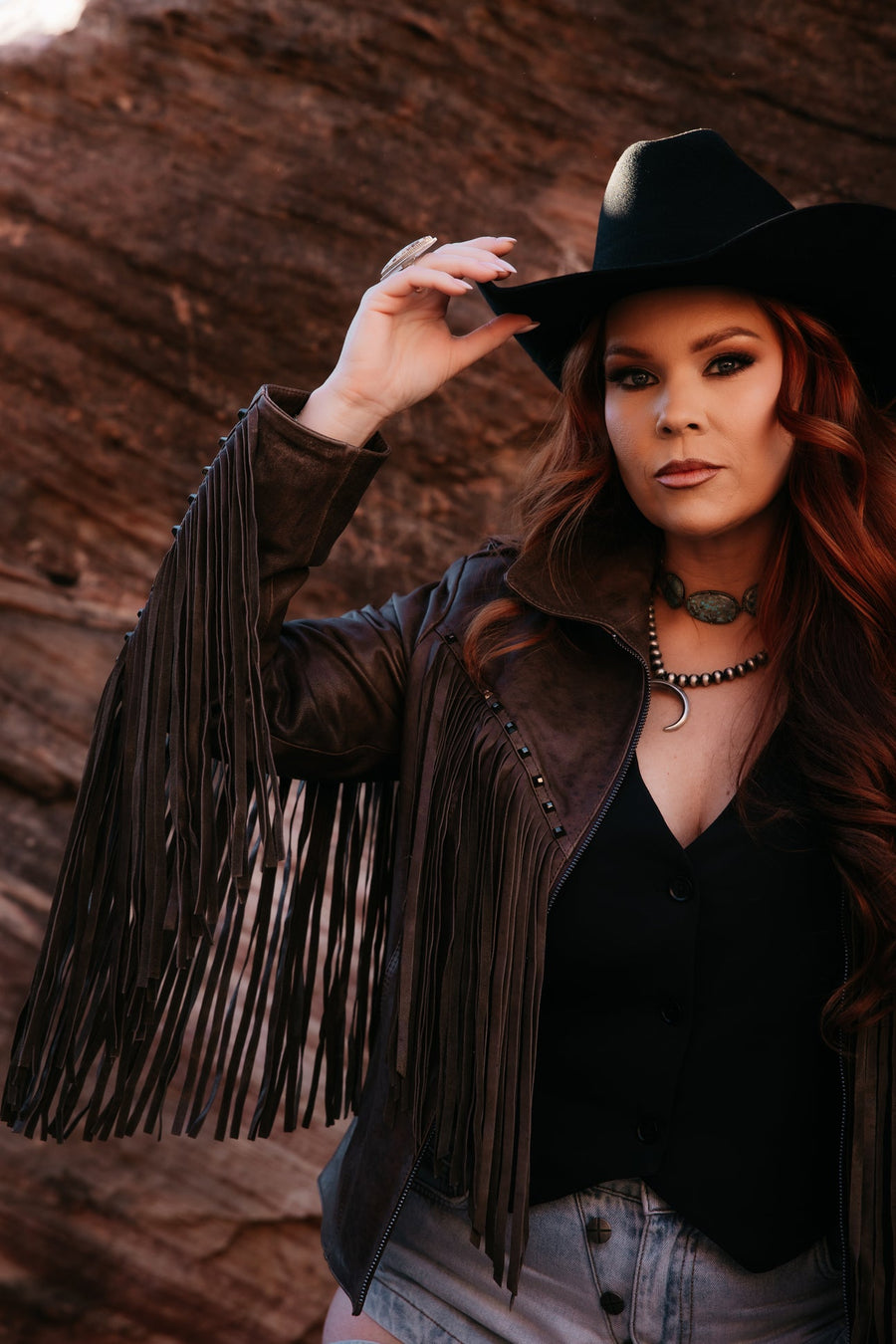 Brown Suede Fringe Duster – Daisy Cut-Out
