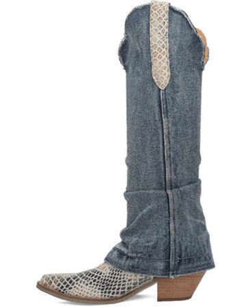 The 16” shaft and snip toe create a striking silhouette, while the 2.5” western heel adds the perfect lift. Designed for both durability and comfort, the single-stitched welt and rubber outsole deliver stability whether you’re out on the town or riding under open skies. Finished with pull tabs for easy on-and-off, these boots are every cowgirl’s dream statement piece.