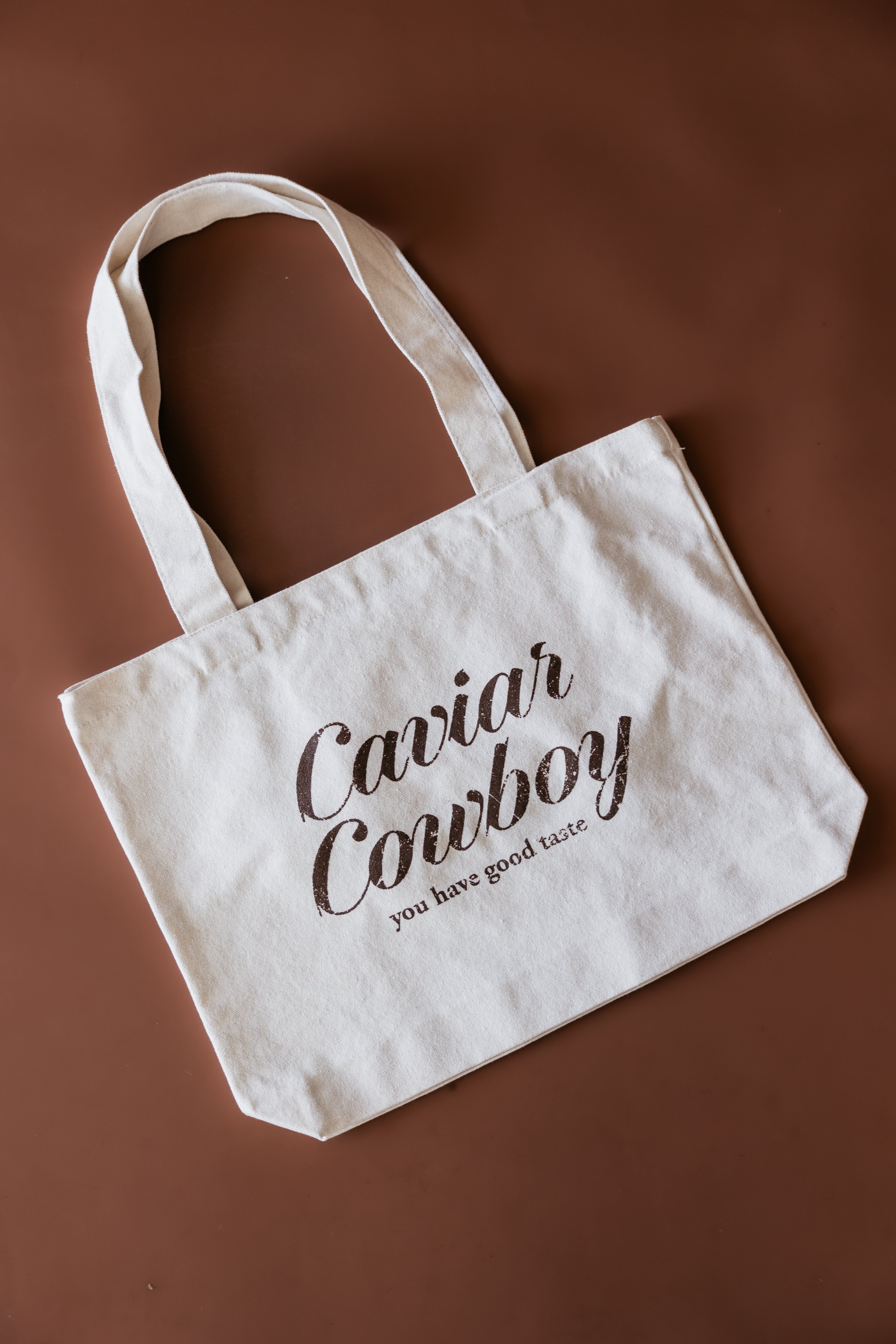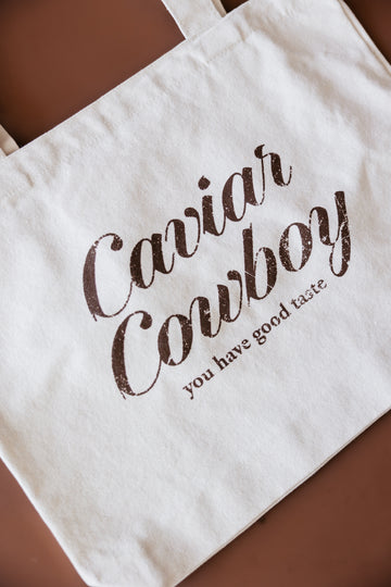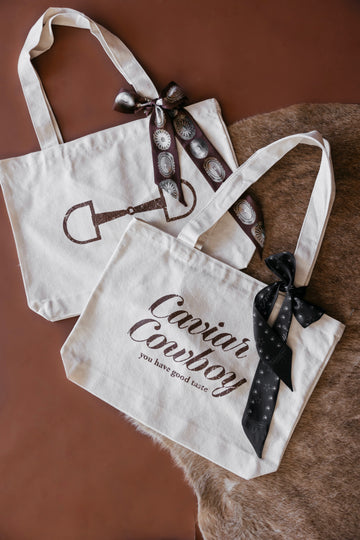 A little luxe, a little western—your new everyday carry. The Caviar Cowboy Tote Bag blends effortless ranch-ready charm with a bold snaffle-bit graphic, all on a soft, durable canvas body that’s made to haul it all. Lightweight, roomy, and ready for errands, rodeo runs, and everything in between.