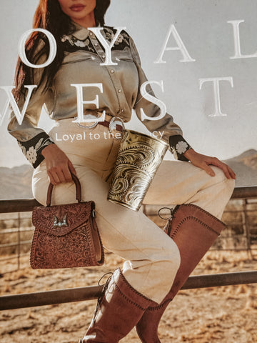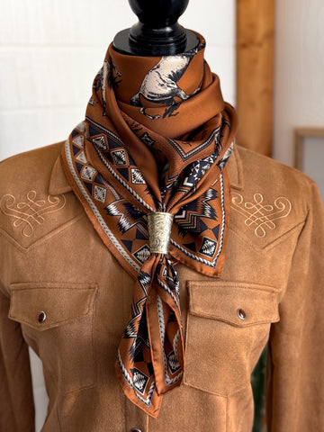 The Giddy Up is our newest slide, designed and custom made for Fringe Scarves! Handmade with amazing tooled detail. The Giddy Up has a great triangular tube shape that is the perfect fit for your Fringe Scarves. Lays beautifully and this classic design will be a staple for years to come.