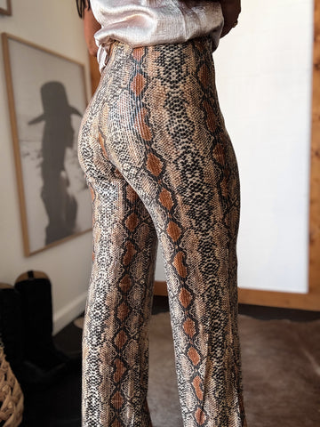 Add some sparkle to your western edge with the Sequin Python Flared Pants. Designed with a flattering high-rise fit and dramatic flared leg, these pants combine bold snake print with shimmering sequins for a look that demands attention.