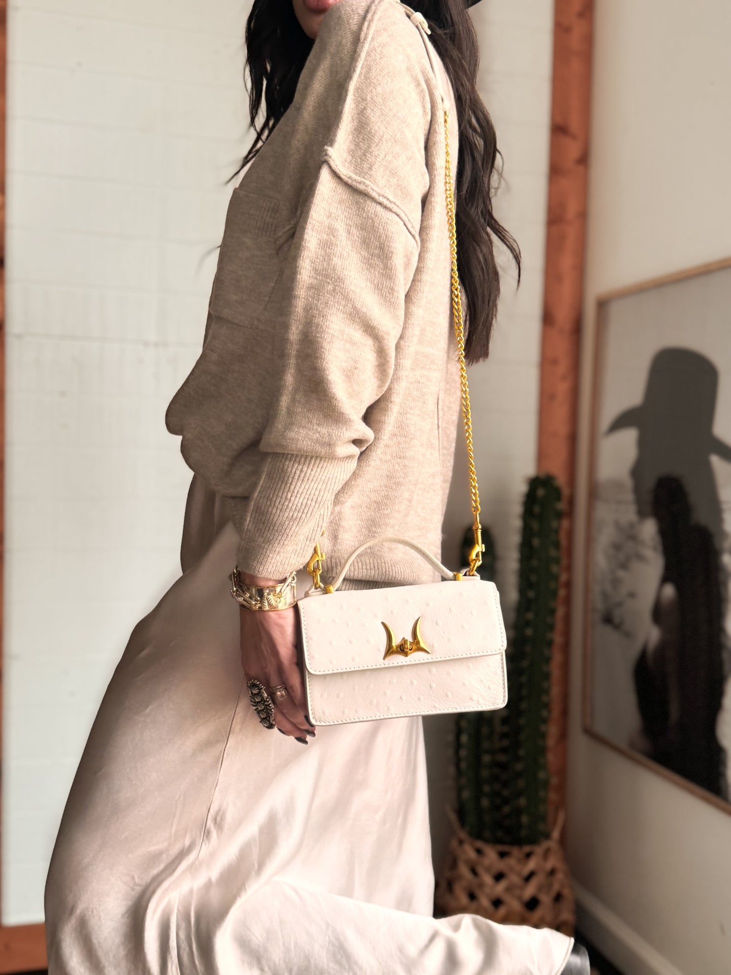 White Valencia Ostrich Leather Bag