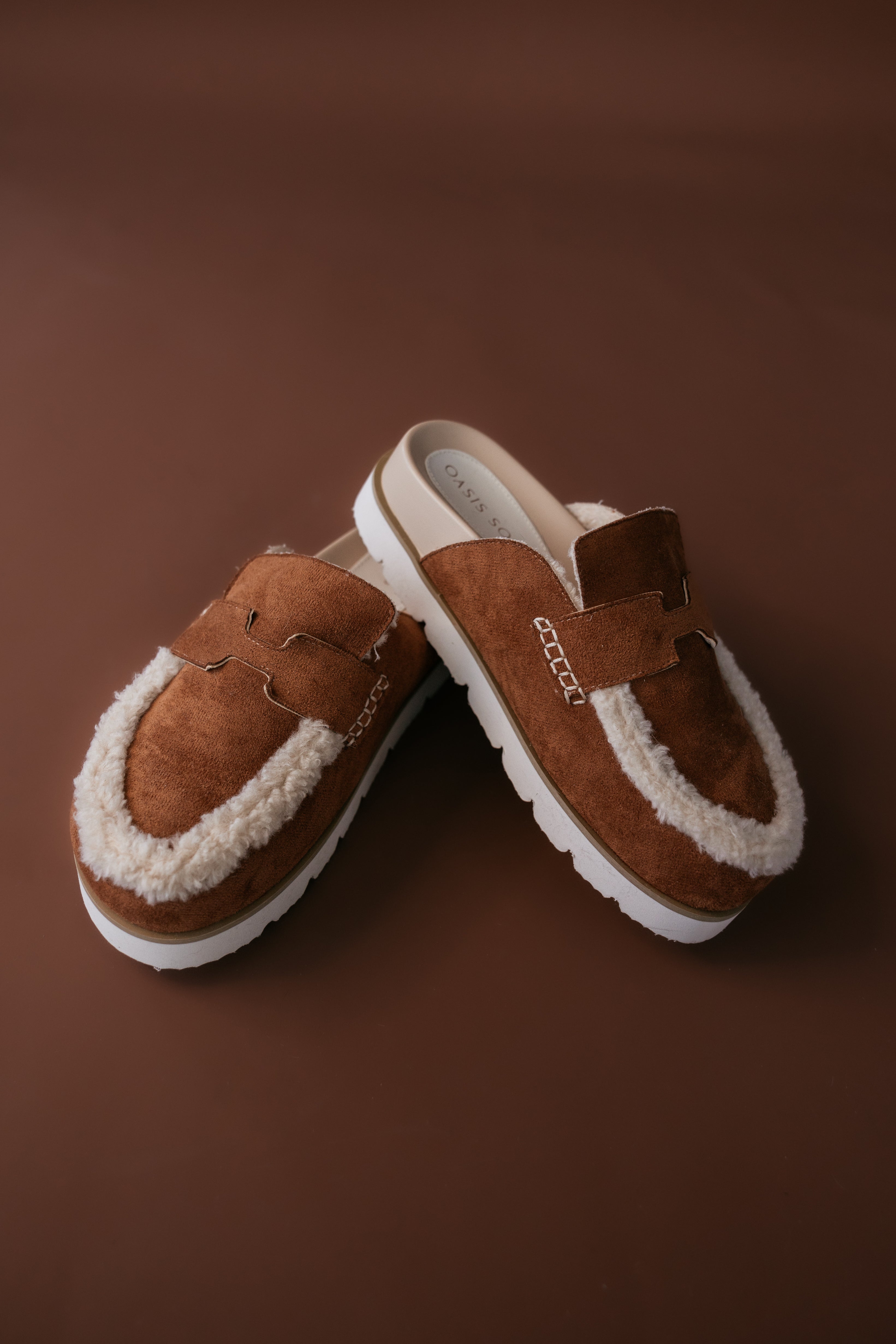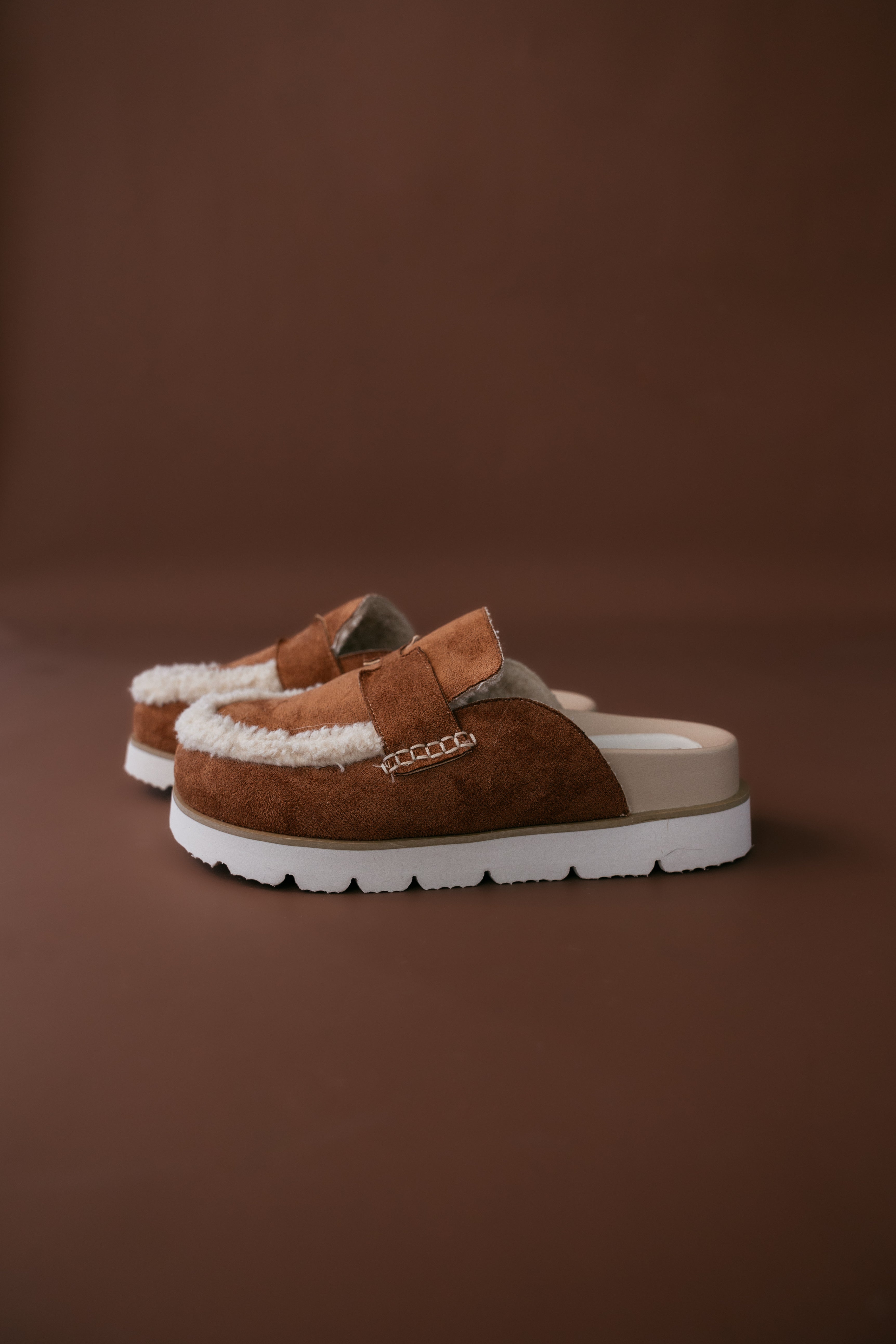 The Avalon Shearling Mule in camel brings luxe comfort to your everyday western wardrobe. Designed with a rich suede upper and accented with plush faux shearling, this cozy slip-on instantly elevates casual outfits with a touch of rustic charm. Built with a cushioned insole and lightweight rubber outsole, it’s the perfect shoe for staying stylish without sacrificing comfort. Ideal for fall errands, coffee runs, or cozy winter evenings by the fire.