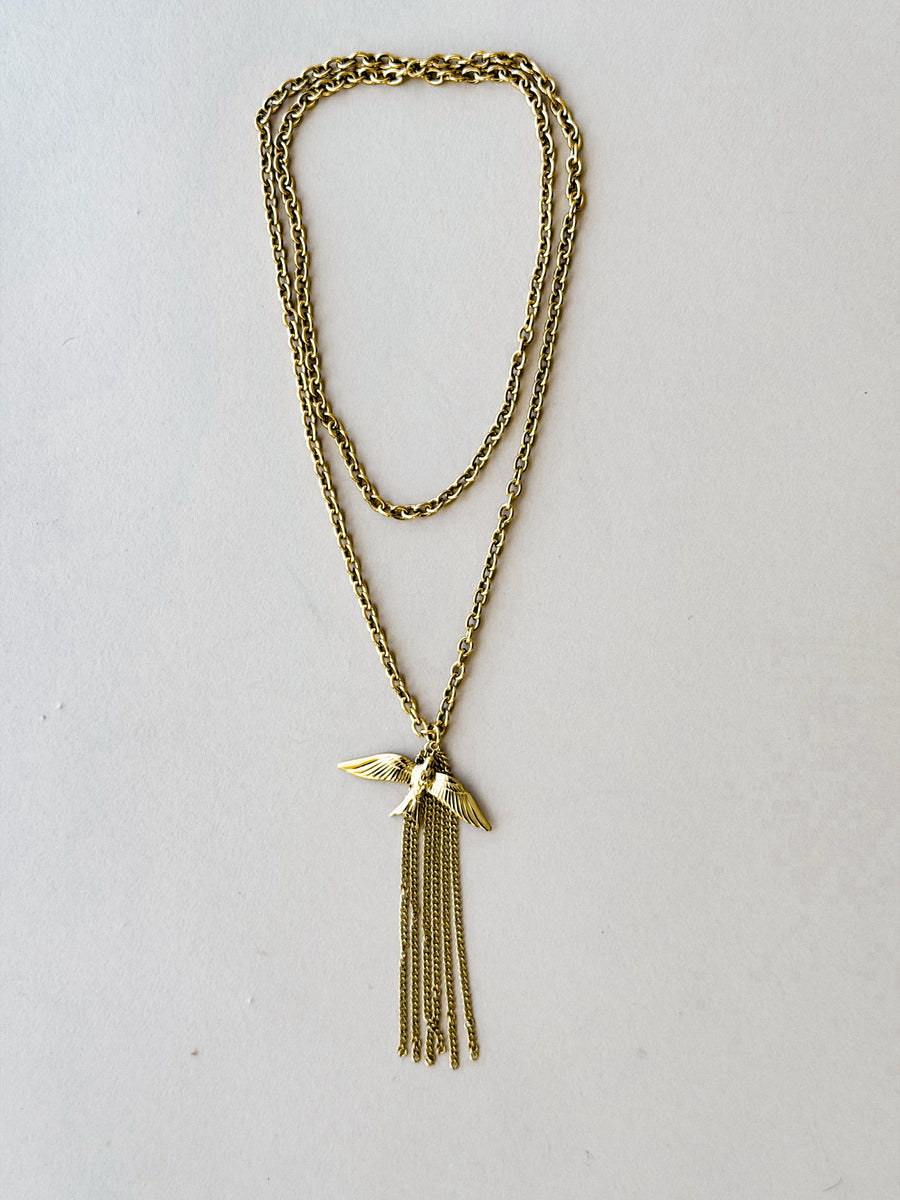 Bird Fringe Chain Necklace - 18k Gold Plated Stainless Steel