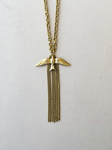 - Polished bird pendant with cascading chain fringe