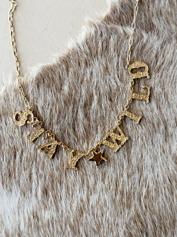 A little reminder to keep doing things your way — bold, untamed, and unapologetic. This gold-tone “Stay Wild” charm necklace adds subtle sparkle and everyday western energy to anything you throw on. Lightweight, easy to layer, and full of attitude without trying too hard.