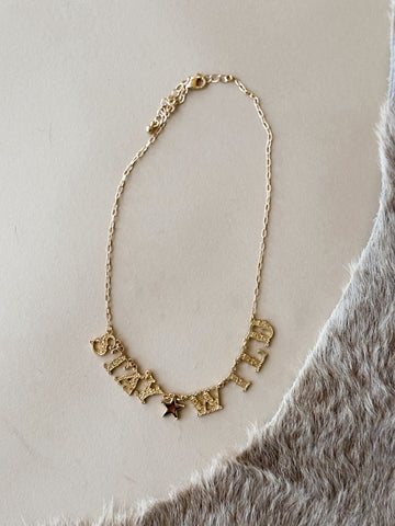 • Gold-tone chain with “Stay Wild” letter charms