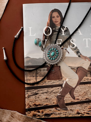 Bold, blooming, and built for cowgirls — the Turquoise Bloom Bolo Set is western jewelry that makes a statement. With a floral-inspired concho bolo necklace and matching turquoise studs, this duo is rodeo-ready and everyday chic all in one.