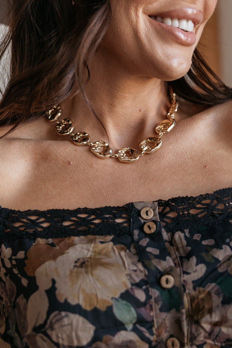 Hammered Circle Link Necklace - Gold