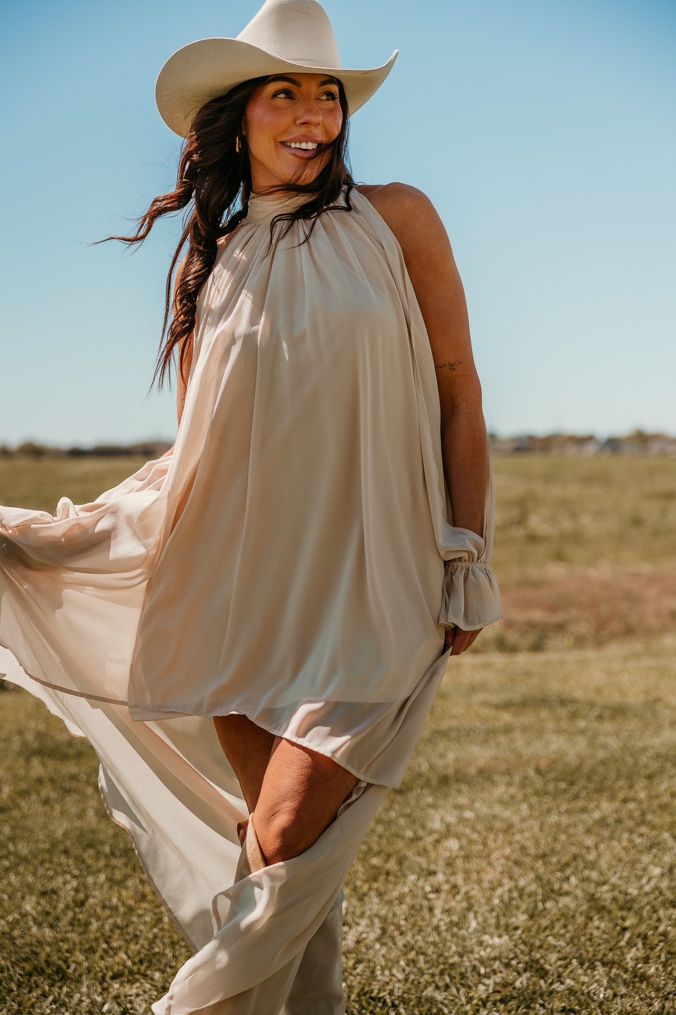 Champagne High-Low Halter Dress *PRE ORDER June 6th*