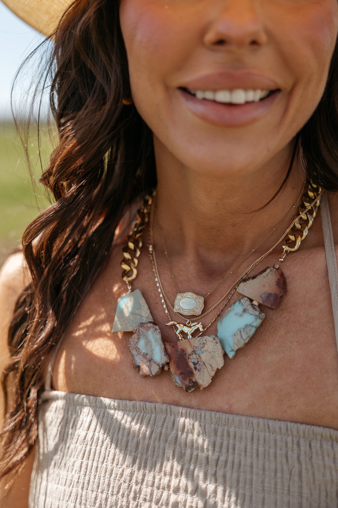 Embrace western elegance with this limited-edition Freeform Snakeskin Jasper necklace. Each piece features a striking snakeskin jasper stone in its natural freeform shape, suspended from a solid brass curb chain that resists tarnishing.