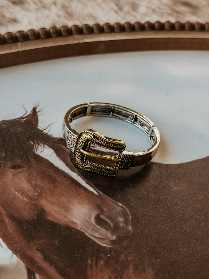 Mixed Metal Western Buckle Stretch Bracelet