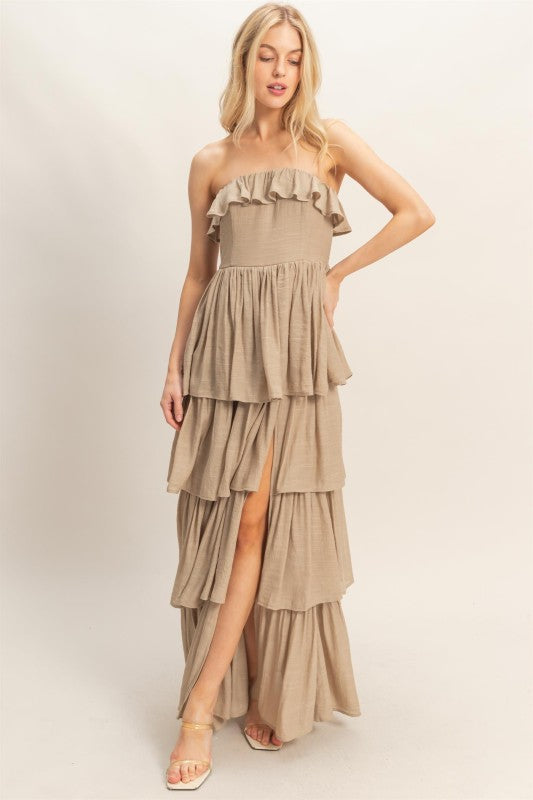 Taupe Strapless Tiered Maxi Dress *PRE ORDER March 18th*