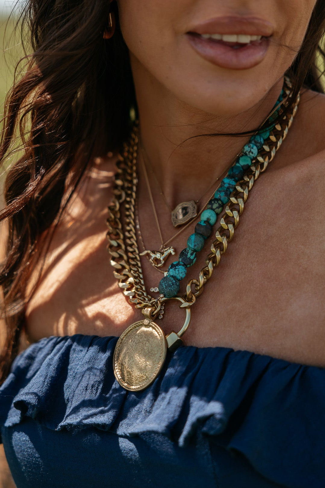 Turquoise + Shield Necklace | Gold