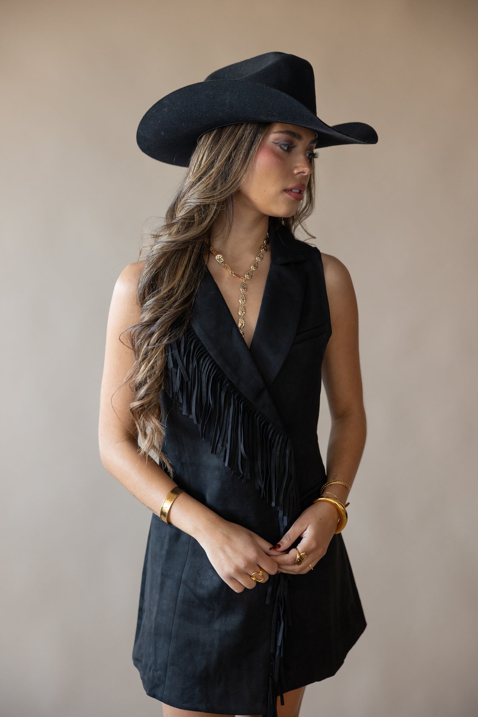 Double Fringe Faux Suede Dress