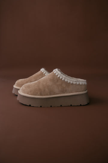 The Brandi Platform Shearling Slip-On in khaki is the ultimate cozy essential with a modern western touch. Crafted in soft vegan suede and finished with detailed whipstitch trim, it’s lined in plush faux shearling for unbeatable comfort. The lightweight platform sole and DreamCloud cushioned insole give you a little lift without sacrificing all-day wearability. A chic off-duty style you’ll reach for from coffee runs to cozy nights in.