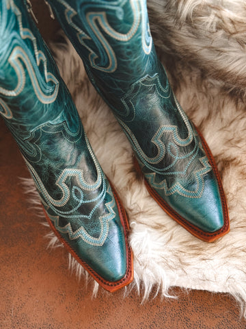 Make a statement in the Allison Tall Turquoise Boots by Rockem. Handcrafted in León, Mexico, the bootmaking capital of the world, these turquoise beauties are built with premium, 100% genuine leather and finished with signature Rockem craftsmanship.