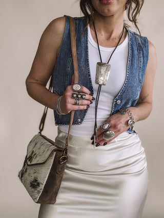 The Cowgirl Stadium Bag - Black & Cowhide