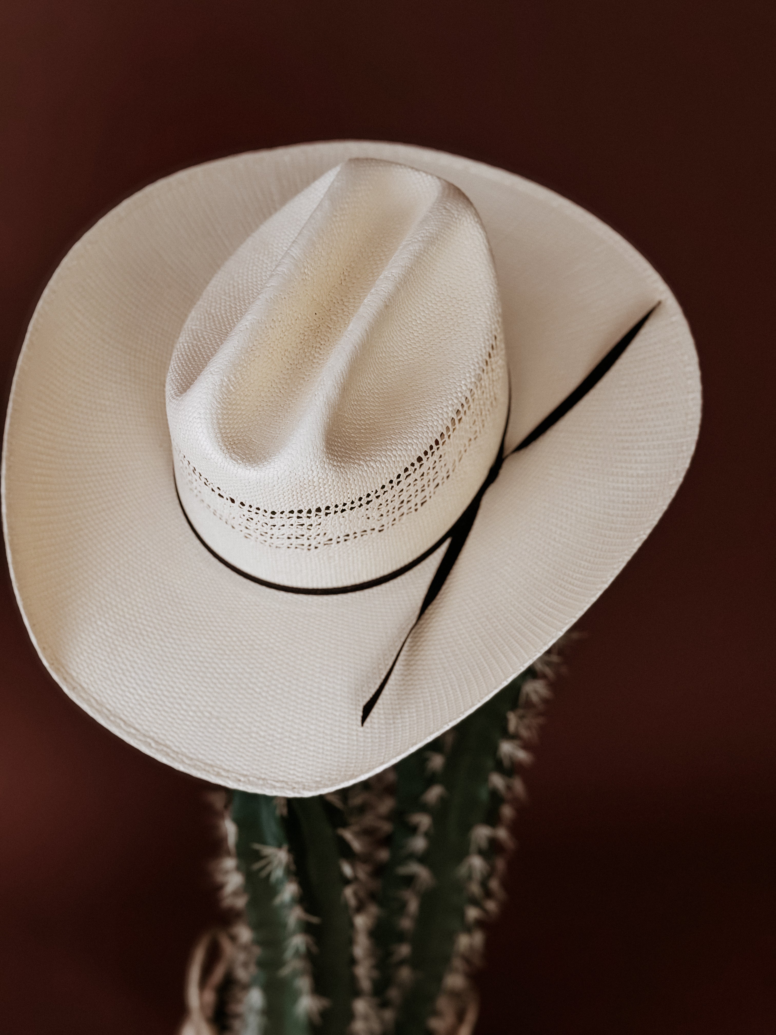 Crafted with intricate vented weave details and finished with a leather sweatband for lasting comfort, this piece is made to ride with you through rodeo days, outdoor concerts, and warm-weather adventures.