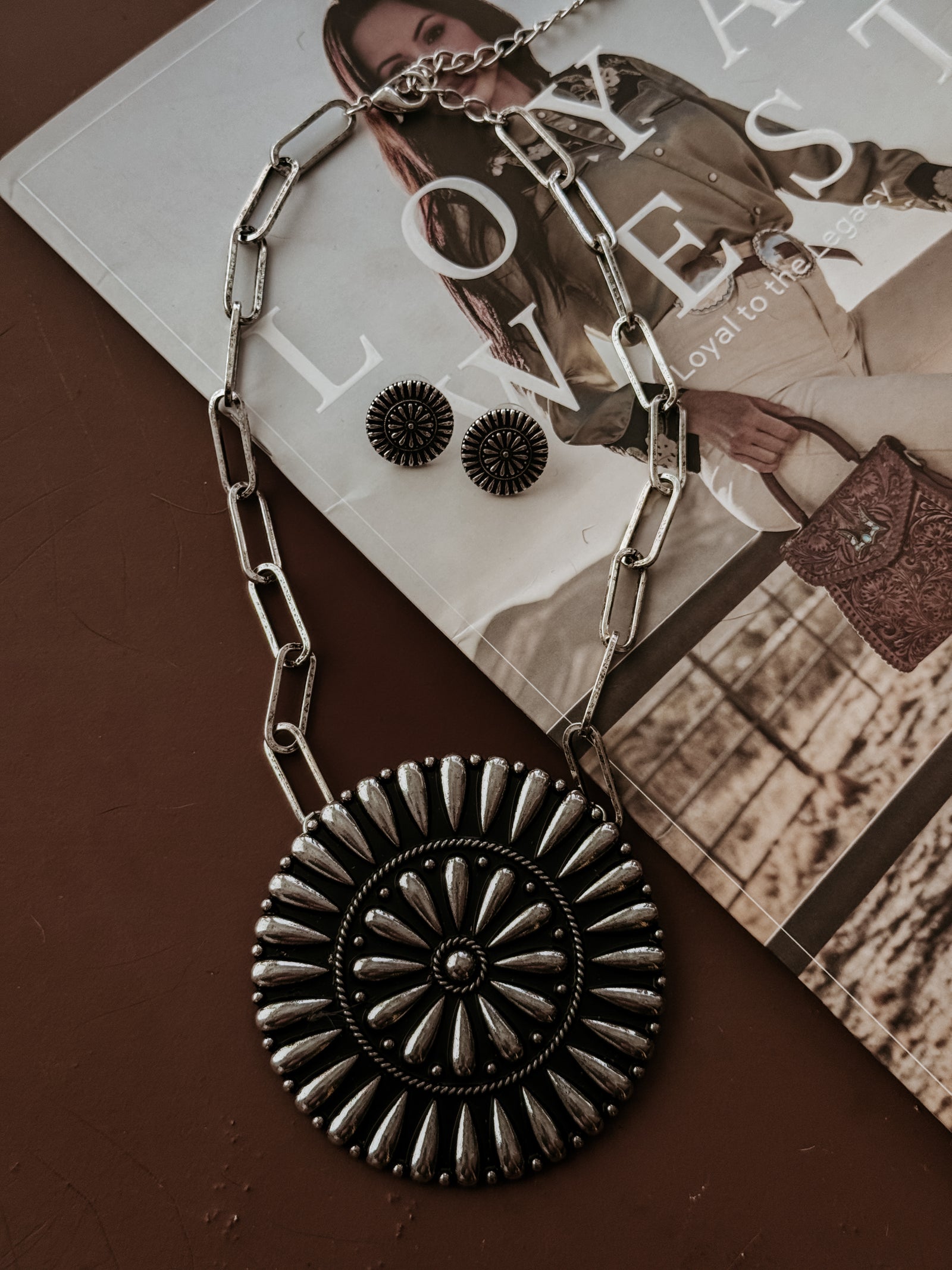 Western Concho Statement Necklace & Earrings Set