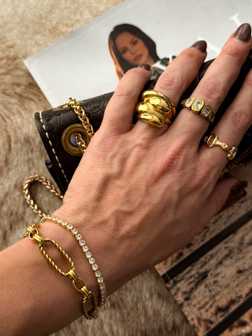 Bold, sculpted, and effortlessly western — the Saddle Dome Ring in Gold is a modern statement with cowgirl edge. Its fluid triple dome design catches the light with every move, adding a luxe, high-shine finish to any look.