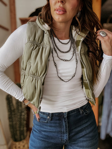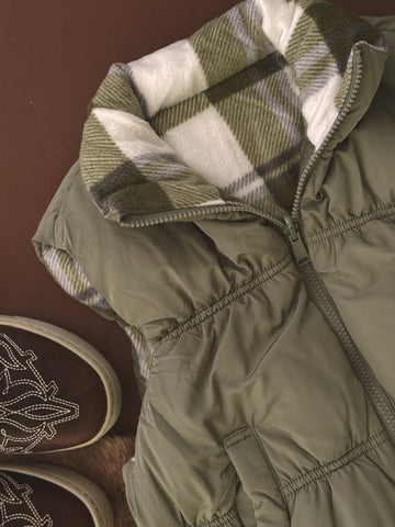 Two looks, one vest—the Reversible Plaid & Khaki Puffer Vest is your ultimate layering piece for the season. With a bold plaid fleece side and a sleek khaki puffer on the other, this vest gives you endless styling options. Lightweight yet cozy, it’s the perfect throw-on for cool mornings, tailgates, or fall rodeos.