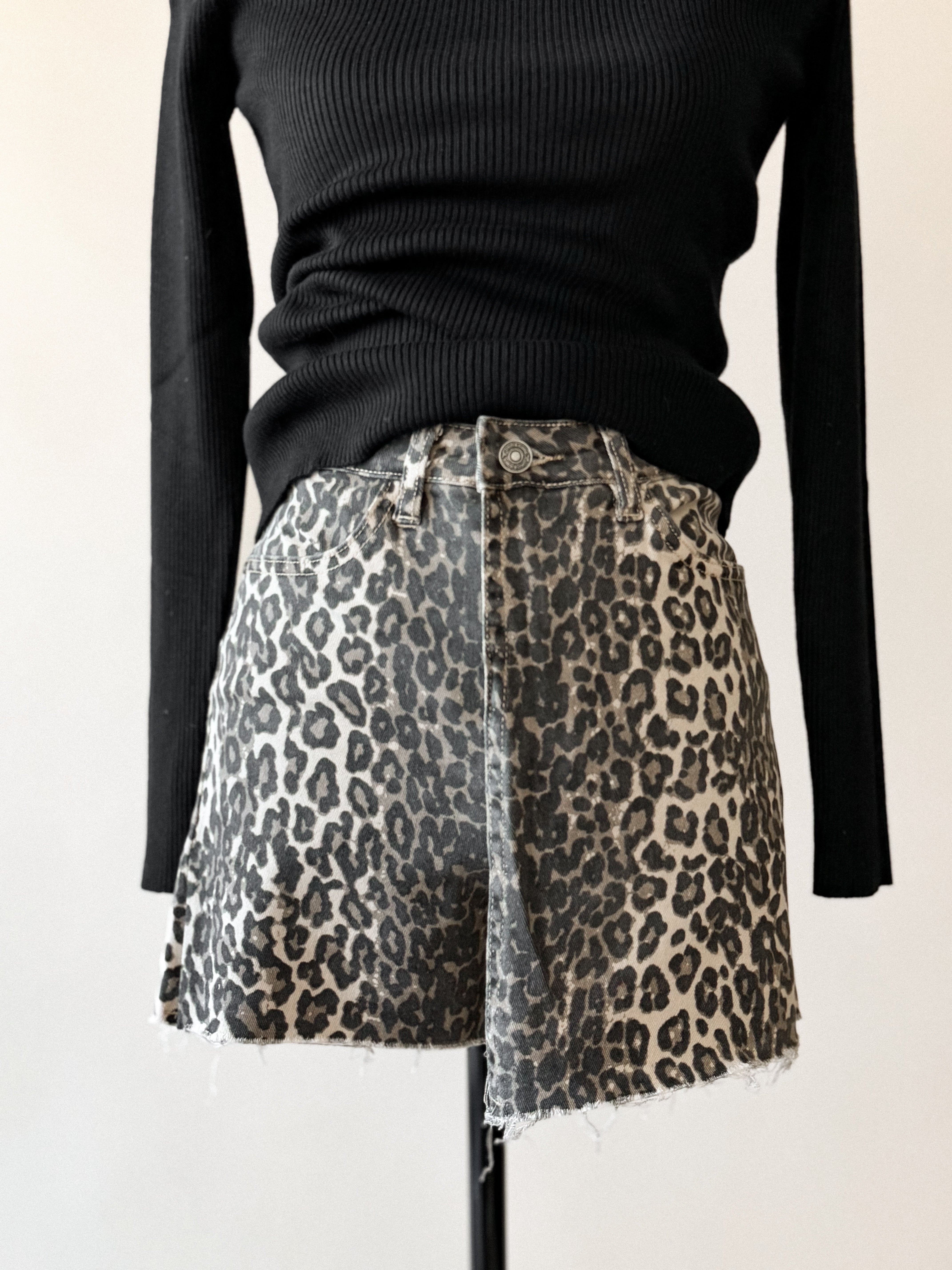 - Leopard print denim skort