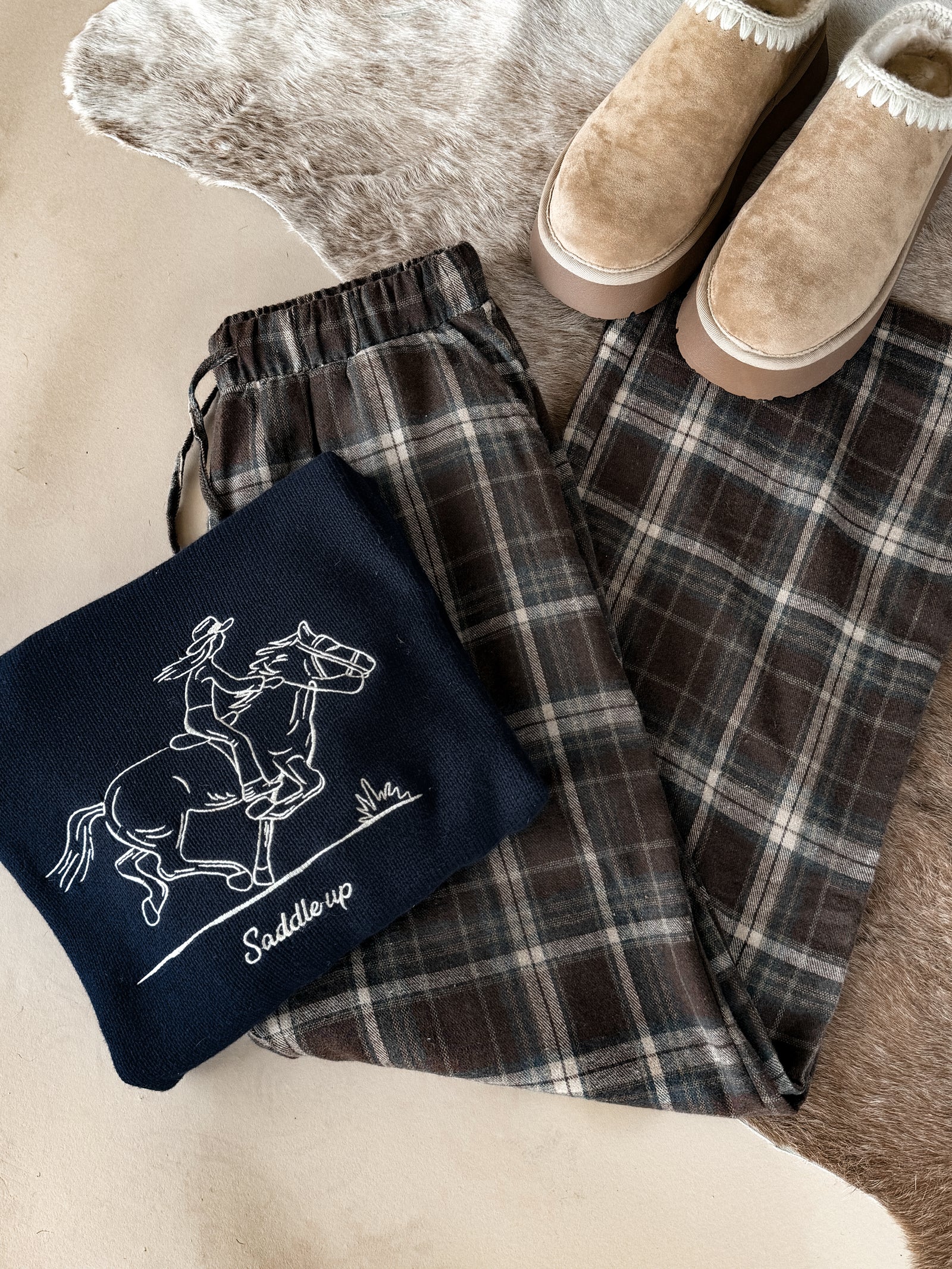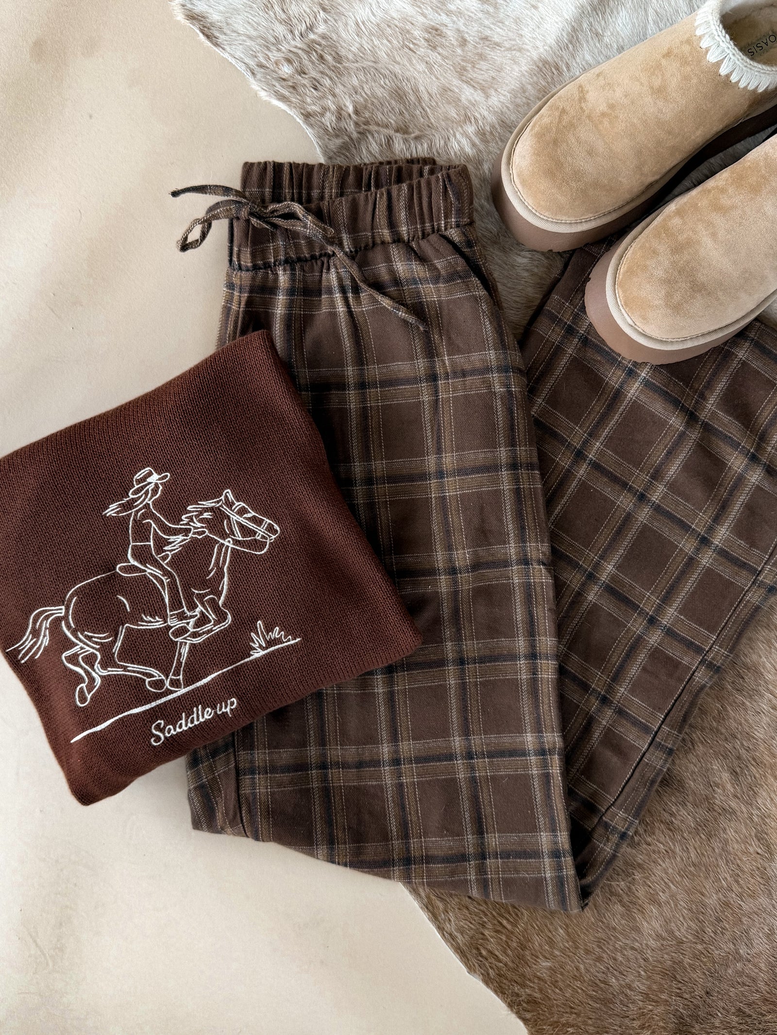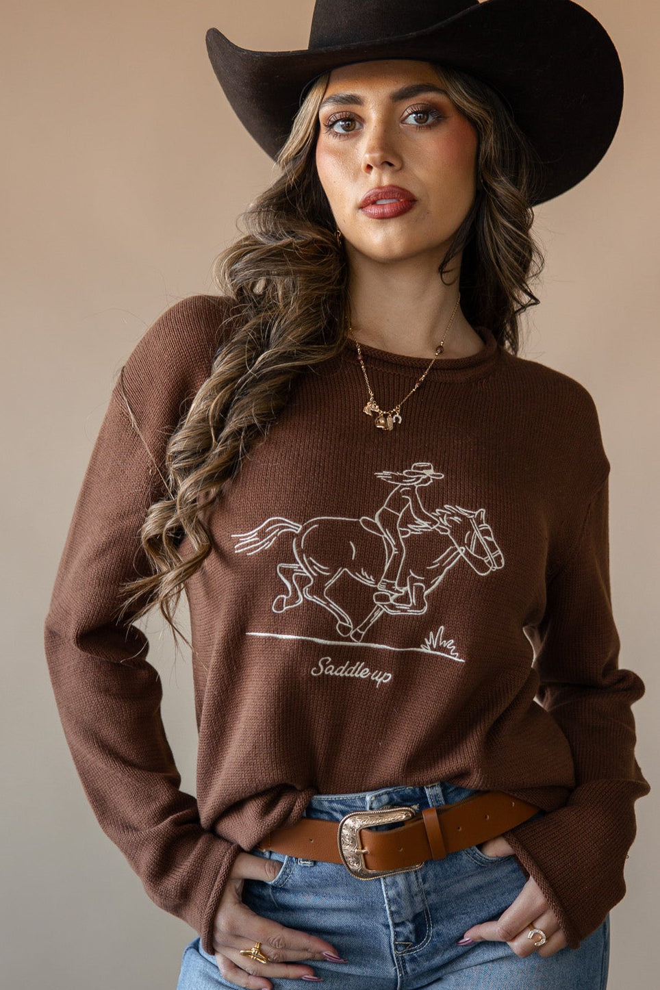 Embroidered Saddle Up Sweater - Brown
