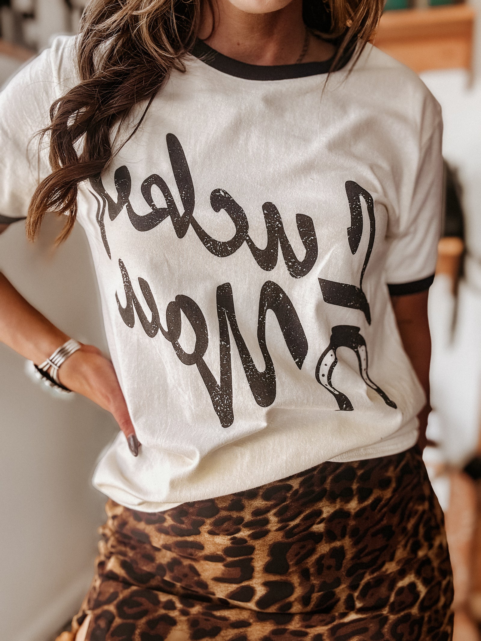 Lucky You Ringer Tee – Western Graphic Top