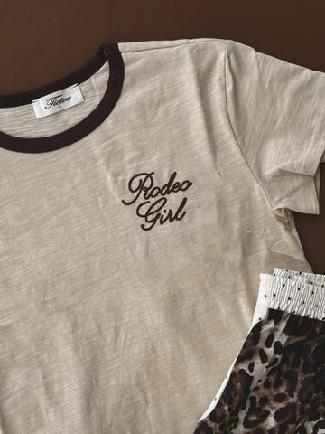 Meet the Rodeo Girl Baby Tee—a modern western staple with a vintage twist. Crafted from breathable slub jersey cotton, this tee has a textured feel that’s lightweight and easy to wear year-round. The relaxed, boxy cropped fit gives it that effortless edge, while the contrast neckline and embroidered Rodeo Girl detail bring cowgirl charm with a modern update.