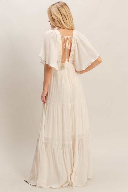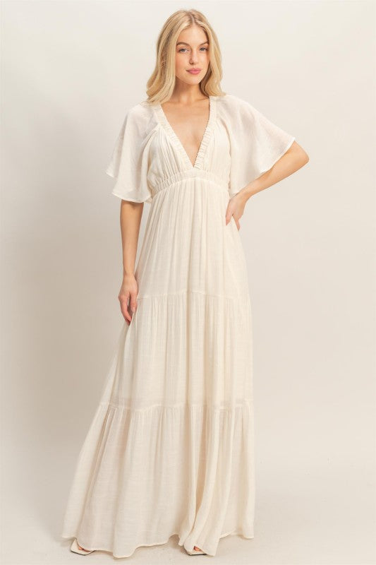 Ivory Flutter Sleeve Tiered Maxi Dress *PRE ORDER March 18th*