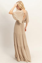 Taupe Flutter Sleeve Tiered Maxi Dress *Pre Order Match 18th*