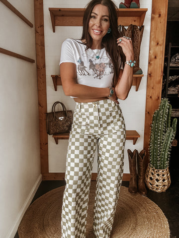 A little wild, a little western — the Roper’s Run Baby Tee brings bold rodeo energy in a soft, form-fitting crop. Featuring a vintage-style roping graphic with three cowboys and a longhorn on the run, this tee hits just right for any trend-setting cowgirl.