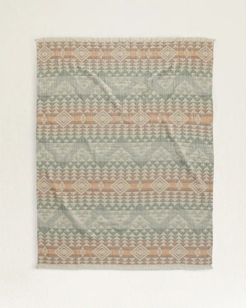 Wrap yourself in effortless comfort with the Organic Cotton Fringed Throw – Aqua Highland Peak. Crafted from ultra-soft, OEKO-TEX® Standard 100 certified organic cotton, this elevated throw blanket delivers Pendleton’s signature patterns in a lightweight, breathable design. Soft tones of aqua, clay, and sandstone form a serene geometric landscape—perfect for adding a touch of modern western style to your home.