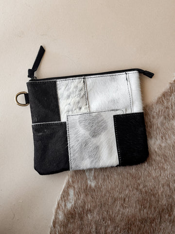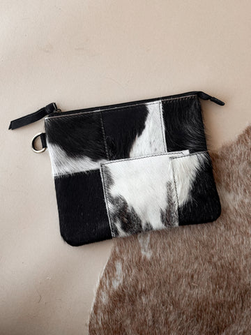 Cowhide Patchwork Wristlet – Black