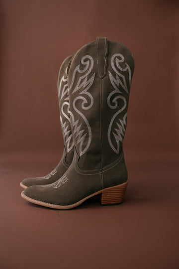 Sumérgete en la era vaquera con estas atrevidas botas vaqueras de ante verde oliva. Confeccionadas en un intenso ante verde oliva con clásicas costuras en contraste, aportan un toque moderno a una silueta vaquera atemporal. Con caña de 34 cm, punta afilada y un tacón robusto de 5 cm, están hechas para toda mujer audaz que no teme destacar. Combínalas con vestidos, vaqueros o flecos para un look de rodeo. Estas botas no solo están hechas para caminar, sino para llamar la atención.