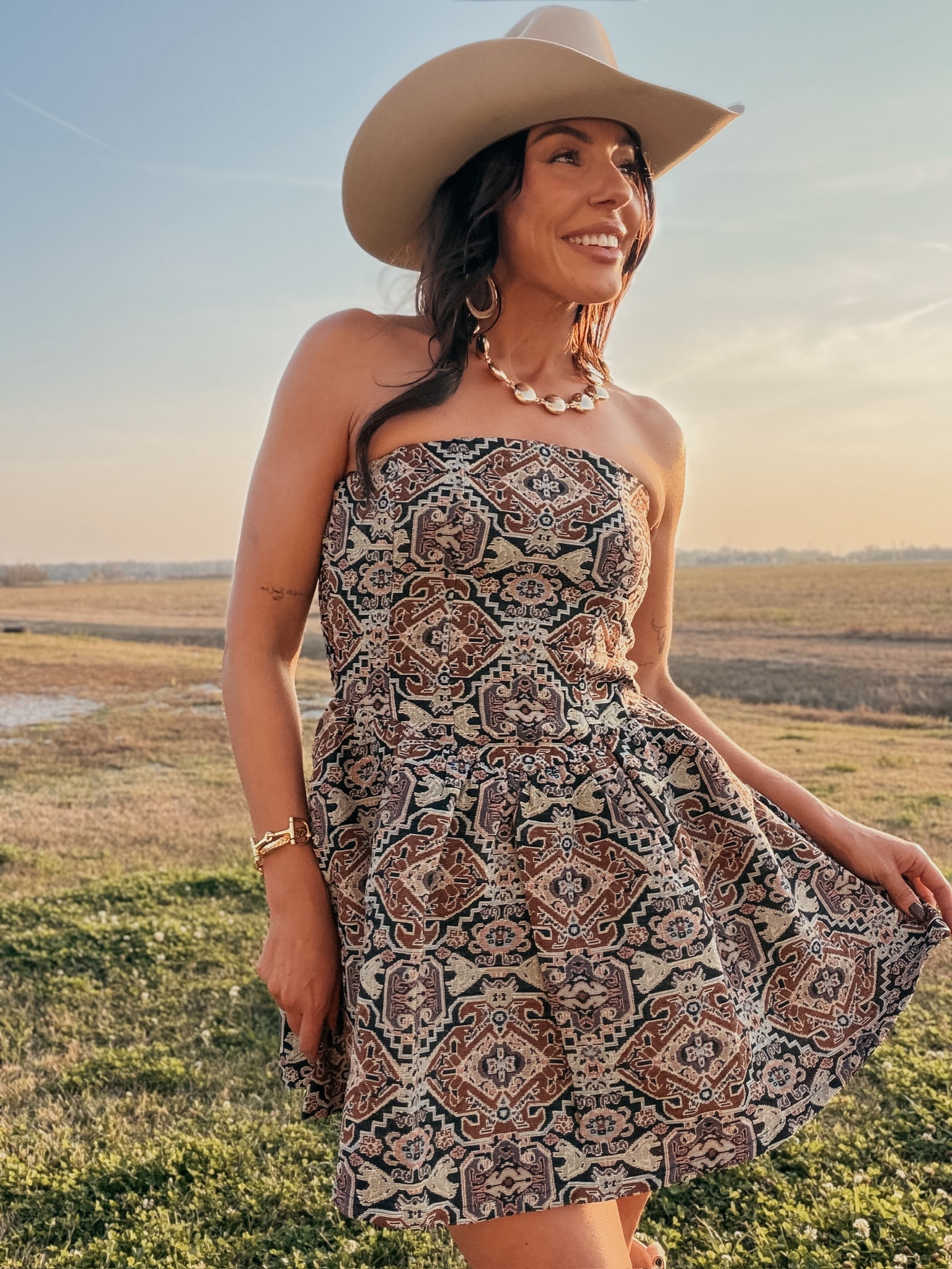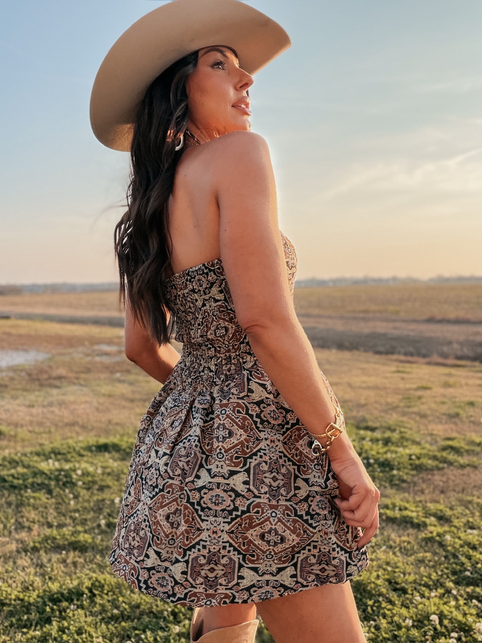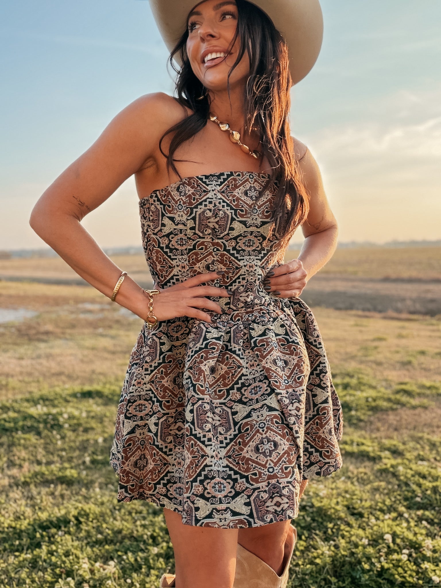 Strapless Jacquard Tapestry Mini Dress