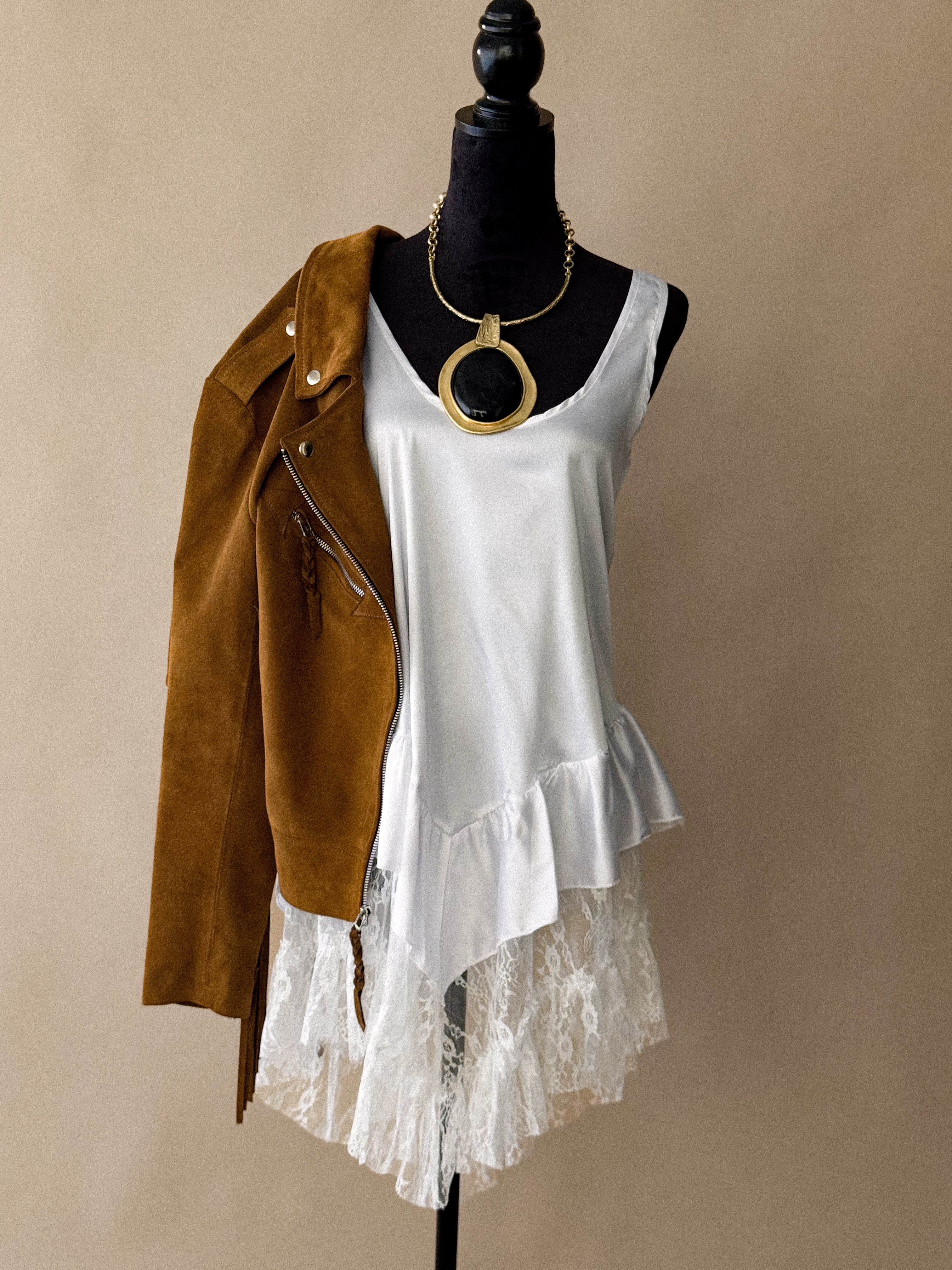 White Lace Asymmetrical Chemise Dress
